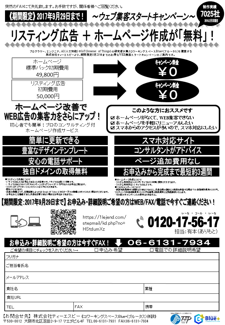 【期間限定】2017/9/29までホームページ制作+リスティング広告『無料!』
